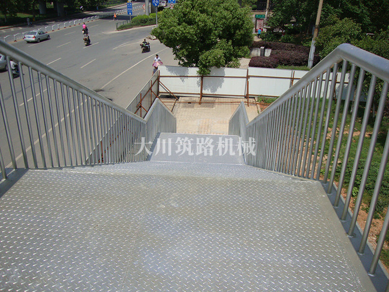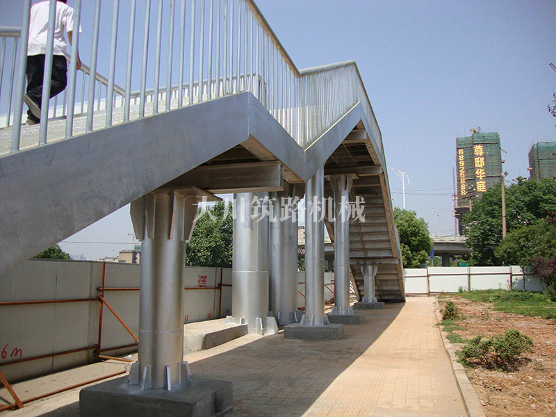 特點:本鋼橋主梁采用標準的“321鋼橋”現場安裝并用朔板包邊,梯道用型鋼、鋼板在廠內加工好現場拼裝,達到安裝便捷、美觀、舒適的要求。本鋼橋安裝工期緊,安裝條件有限,大都只能得用晚間在封鎖交通的情況下安裝。